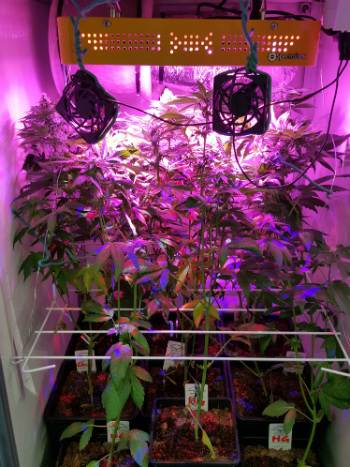 Nu zijn negen wietplantjes eindelijk uitgegroeid zijn en de LED kweeklamp op zijn allerhoogst hangt, hoeft onze groene dokter zich geen zorgen meer te maken over toppen die tegen de lamp aan groeien. Toch haalde hij deze week nog één troef in de kast om zijn toppen te beschermen.