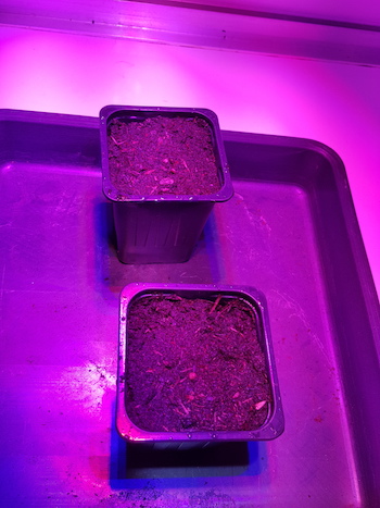 Ik vertelde vorige week ook dat ik nog niet zeker wist welke soort het moest gaan worden. Ik ben dus even in mijn persoonlijke zadenvoorraad gedoken om te kijken welke soorten in aanmerking konden komen. De keuze is gevallen op twee Grapefruit zaden van Organic Earth. Jammer genoeg verkopen zij deze soort momenteel niet meer, maar ik heb er voorheen veel plezier van gehad. Het is een heerlijk smakende indica die superveel hars produceert. Ik had nog drie van deze zaden liggen dus dat kwam perfect uit, door ze alledrie te laten kiemen was ik verzekerd van minstens twee nieuwe zaailingen. En dat bleek achteraf een goede beslissing want aangezien één van de drie zaden niet ontkiemde, hield ik er toch twee over om vandaag te kunnen poten.