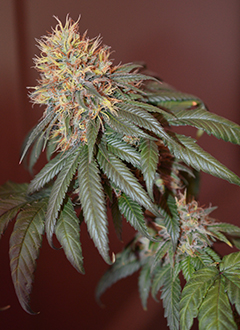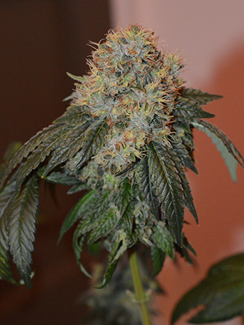 Twee van de negen planten heb ik niet van hun bladeren ontdaan. De twee hebben duidelijk een andere topstructuur dan de rest, en zijn wat dat betreft dus andere fenotypes. In totaal zaten er dus drie verschillende fenotypen tussen de negen gebruikte zaden. Zeven van de negen planten waren na 8 weken bloeien kogelhard en klaar voor de oogst. Eén van de dames heeft aanmerkelijk grotere toppen en is op dit moment (de negende bloeiweek) bijna klaar voor de oogst en het laatste fenotype neigt duidelijk wat meer naar de sativa kant en heeft nog veel witte bloeiharen. De toppen aan deze plant moeten ook nog opzwellen en zullen dus nog flink groter worden.