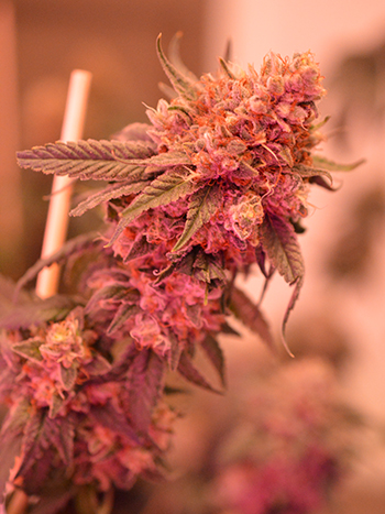 Omdat ik de planten niet direct bij thuiskomst wilde oogsten, heb ik ze gespalkt met wat stokken. Het zou zonde zijn als een van de takken zou breken. Ook heb ik ze voor de foto’s alvast voor het grootste gedeelte ontbladerd. Wie weet reageren ze erop met nóg meer trichomen, wie zal het zeggen?