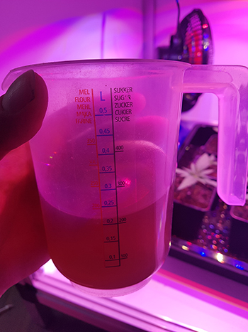 Bactrex gebruiken is supermakkelijk, je lost gewoon een gram op per liter water en geeft dat één keer per week. Aangezien mijn Lemon Zkittle plantjes nog maar kleine zaailingen zijn, had ik aan 0,25 gram en een kwart liter water genoeg.