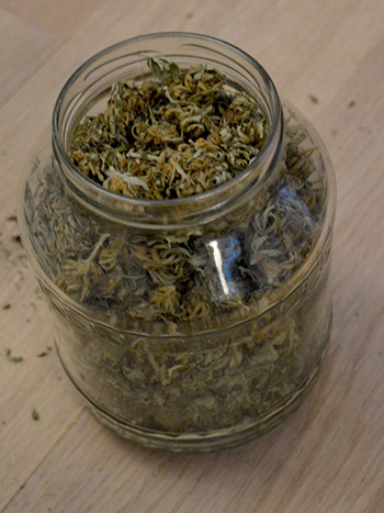 De hoofdingrediënten van mijn wietolie en concentraat zijn best bijzonder al zeg ik het zelf. Het bestaat voor een groot deel namelijk uit buitenwiet – Passion #1 om precies te zijn – die ik in 2014 kweekte en sindsdien netjes in potten heb bewaard. Deze wiet bevat als de theorie klopt relatief veel CBN, een afbraakproduct van THC waarvan je heerlijk gaat slapen. Daarnaast heb ik nog wat oude autoflower cannabis, eveneens uit 2014 en dus eveneens met veel CBN, gebruikt.