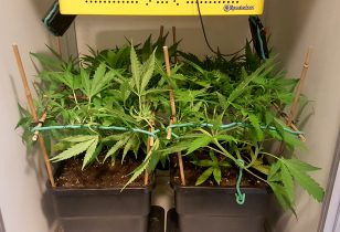 Hij heeft het er maar druk mee, onze dokter Groen. Steeds wanneer een paar scheuten van zijn Grapefruit planten omlaag bindt, komen de planten terug met nieuwe scheuten. Ondertussen staan de twee planten nu een week op een 12-uurs lichtregime, dus de bloei zal niet lang meer op zich laten wachten.