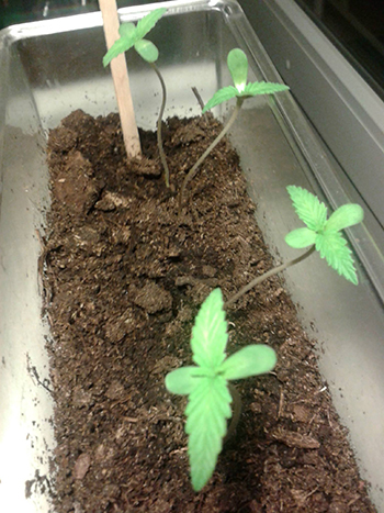 Na de zaden (Super Silver Haze) ontkiemt te hebben, heb ik ze in een groeibakje geplaatst. Ik had toen nog geen idee dat het overmatige verpotten ook een negatief effect kan hebben op de plant. Aangezien de plantjes best snel groeiden heb ik ze binnen 10 dagen al overgepot in glazen schaaltjes.