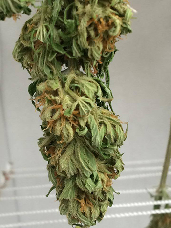 Wazige foto’s, maar de toppen waren redelijk groot en vol met trichromen. Besloot ze te knippen nadat ongeveer 80% tot 90% van de bloeihaartjes bruin waren geworden.