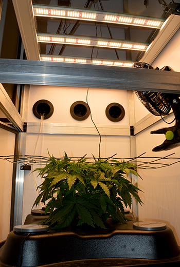 Het gaat fantastisch met de Sneeze plant van onze kweekdokter. En dat terwijl hij de wietplant de hele week haar gang heeft laten gaan. Hij plaatst zijn scrogrek met de handige beugels van CannaTommy en verlaagt de kweeklamp iets. Omdat de pH-meter ook met de nieuwe sensor nog niet helemaal correct meet, wordt die opnieuw geijkt en krijgt Sneeze weer vers voedingswater op de juiste zuurtegraad.