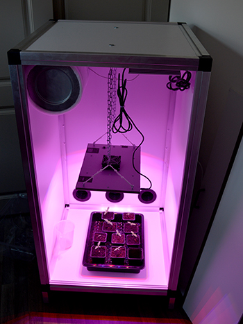 Wanneer je zoals ik in de CNNBS G-Kit met LED kweeklamp kweekt, zal het niet heel snel oververhit raken in je kastje. Maar wie Met HPS kweekt, doet er goed aan om in de zomer over te stappen op een LED kweeklamp. LED kweeklampen blijven aanzienlijk koeler namelijk. Ook kun je overwegen om het dag en nachtritme om te gooien. Door overdag de lampen uit te hebben en ’s nachts aan verlaag je niet alleen de maximale temperatuur in je kweekkast maar verklein je ook het temperatuurverschil tussen de lichte en donkere periode. Dit zorgt voor een snellere overgang in stofwisseling van dag naar nacht, en andersom.