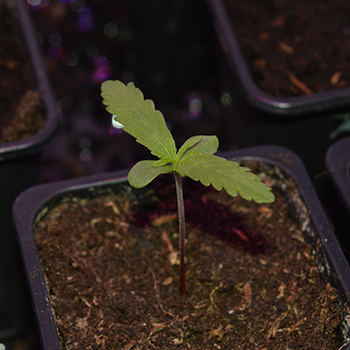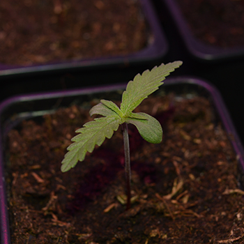 Misschien weet je van vorige week nog dat een van mijn zaailingen zijn zaadje niet wilde afschudden. Ik moest hem er voorzichtig afpulken en schreef vol vertrouwen dat ik ervan uitging dat ook dit plantje het wel zou redden. Twee dagen later dacht ik daar echter anders over; het plantje leek niet veel meer te doen en ik vreesde dat ik haar toch teveel beschadigt had. Maar wie mij een beetje kent, weet dat ik wietplantjes niet zo snel opgeef en warempel: inmiddels groeit het kleine plantje weer. De ronde lobblaadjes hebben niet veel licht kunnen opvangen maar inmiddels heeft ze net als de andere zaailingen haar eerste gekartelde wietblaadjes. Ze is nog wat kleiner als de rest maar dat trekt wel bij.