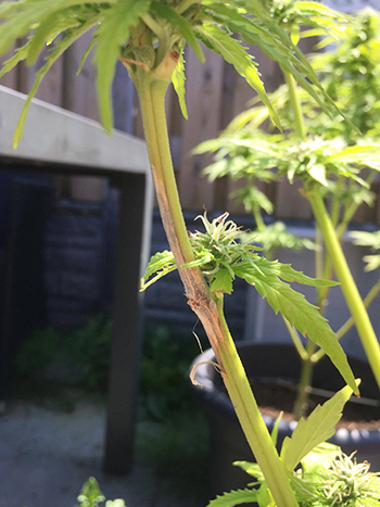 Als de bloeifase vordert zal ook deze plant voor het raam best een mooie hoofdtop krijgen, al moet je van deze dame niet zoveel verwachten als de plant buiten. Het verduisteren en de zon in de tuin hebben deze plant duidelijk de grootste gemaakt. Je kunt overwegen om deze dame ook buiten te zetten, en misschien ook te verduisteren, voor een extra mooie bloeifase. Mocht ze toch hermafrodiet zijn dan hoop ik dat je niet weer getraumatiseerd raakt, maar de plant snel bij de andere dame weghaalt.