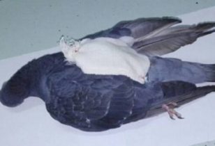 Bestemming: een binnenplaats van de gevangenis van Toya. Aan boord van de smokkelduif: 44 pillen Ritrovil, met clonazepam als werkzaam bestanddeel (o.a. tegen epilepsie en slapeloosheid), een USB-stick (vast met porno erop gokken wij, want internet is er niet bij als je moet brommen daarginds) en 3,5 gram wiet!
