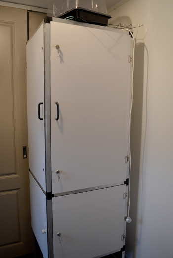 Tenslotte heb ik ook het koolstoffilter meteen weer netjes op zijn plaats gehangen. Zoals je misschien nog weet had ik die tijdelijk buiten de kweekkast geplaatst omdat ik mijn Do Si Dos in de laatste kweekronde wat te hoog had laten worden. Volgende week meer….