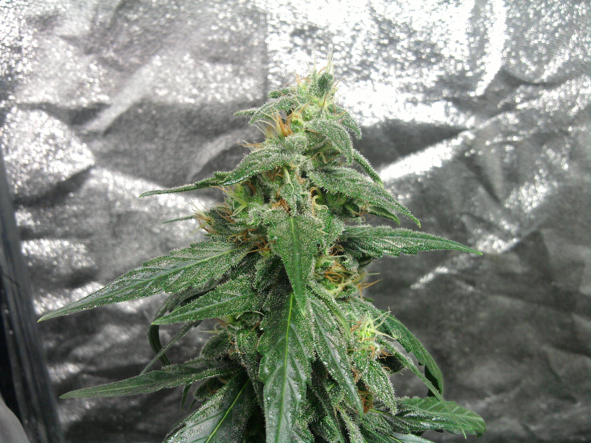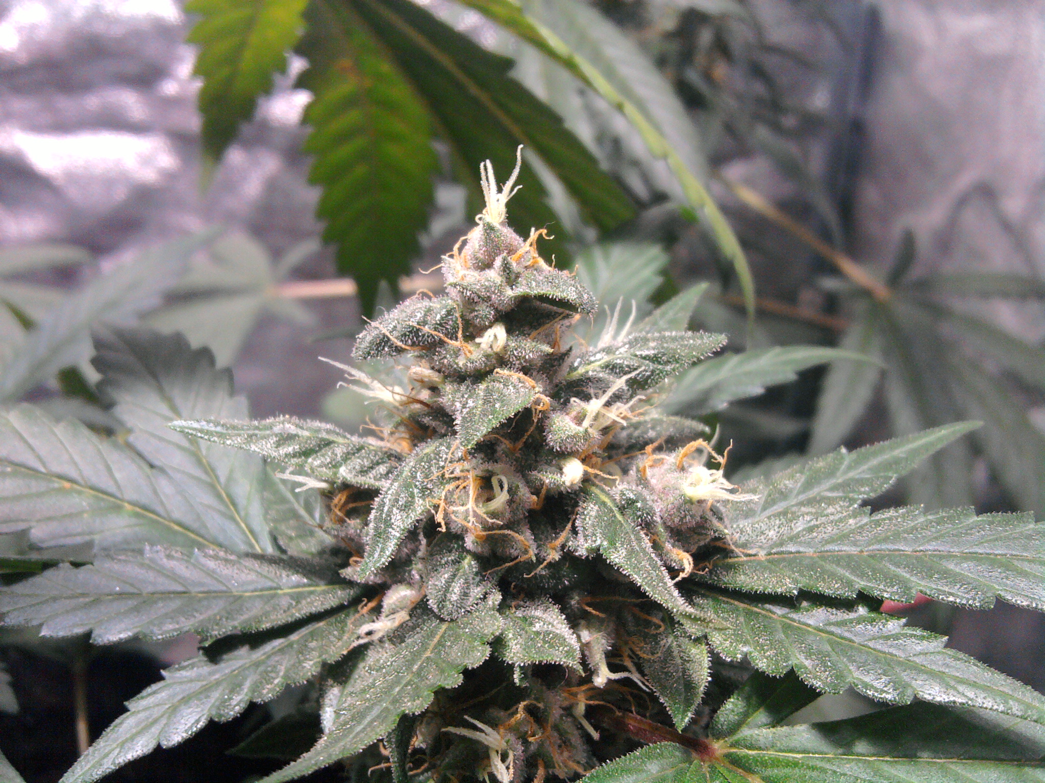 Ik had jullie al verteld dat een van de drie KillingKush plantjes die in mijn tentje staan eigenlijk een ander fenotype is. Fenotype betekent letterlijk verschijningsvorm. Het is het totaal van alle waarneembare eigenschappen (kenmerken) van een plant. Dit exemplaar is in tegenstelling tot de twee andere paars, waar ik enorm blij mee ben want ik ben gek op paars. Maar nu de bloei voortzet, begint het blad van de paarse plant ook te vergelen. Het ligt volgens mij niet aan de voeding want het ziet eruit alsof de plant gewoon aan het afbloeien is. Ik weet het niet, maar het ziet er dus wel naar uit dat ik de paarse plant eerder kan oogsten dan de twee anderen.