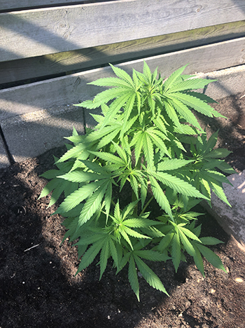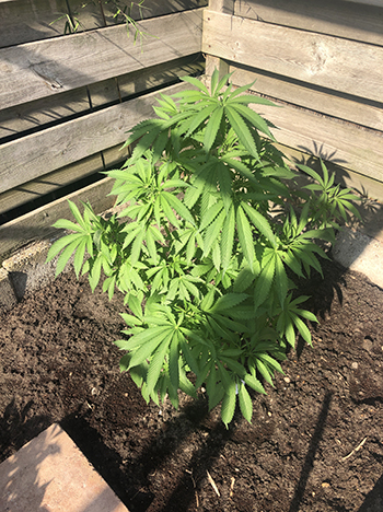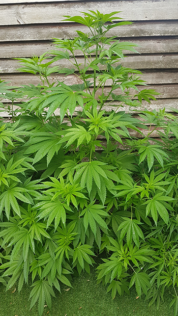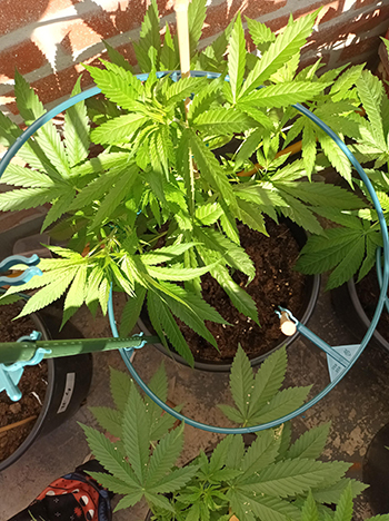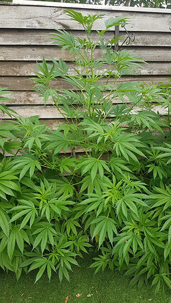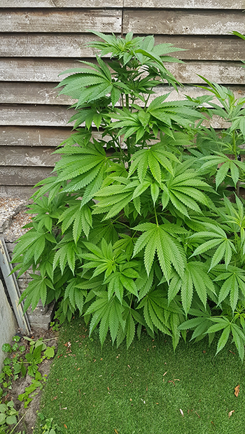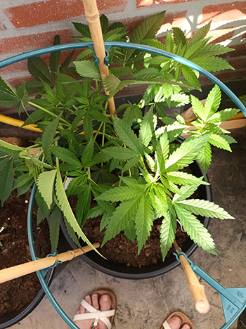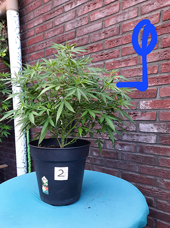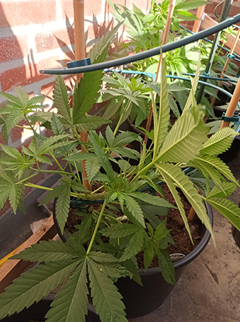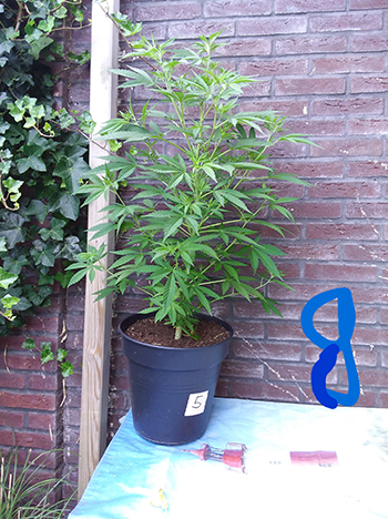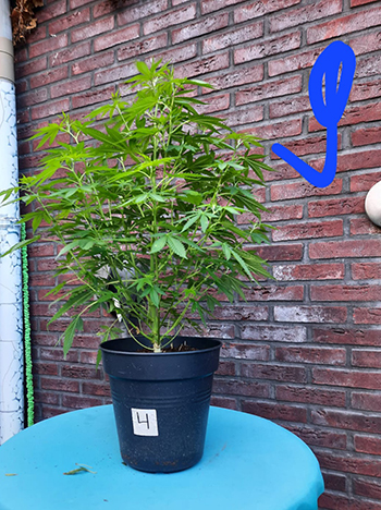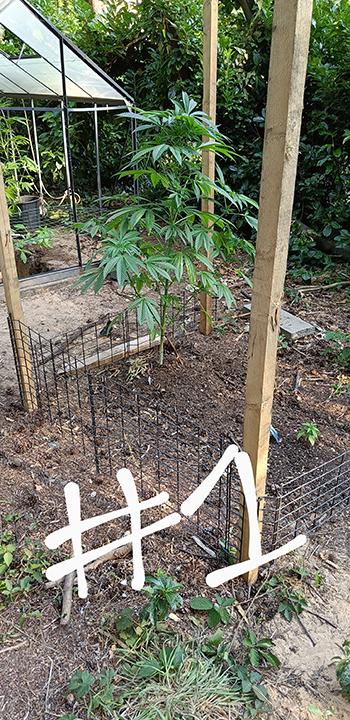 Update 18 juli 2022: Hey hey, met dit lekkere weer gaan de plantjes goed vooruit. #1 staat in de volle grond en gaat intussen naar 1,7 meter hoogte. Het is een mooie brede plant met gigantische bladeren. #3 staat in pot onder een afdakje. Deze heeft ook hele mooie grote bladeren en is intussen de 2 meter voorbij gegaan!! Binnenkort zal ik deze van een diepere put moeten voorzien, zodat ze onder het afdakje kan blijven staan voor de regen tegen de bloeiperiode. #5 was op vier bladeren na opgegeten door slakken. Nu een hele tijd geen last meer gehad hiervan, en deze heeft bovenaan drie mooie scheuten gekregen. Hiermee zag ik een goede mogelijkheid om eens een scrog te proberen.