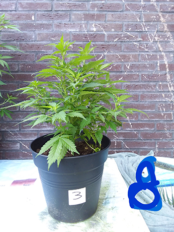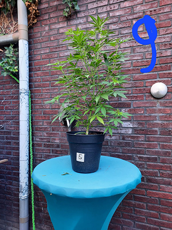 Update 24 juli 2022: Ze gingen niet zo heel goed. Ik had ze te veel voeding gegeven en de bladeren werden bruin aan de randen. Ik geef ze op dit moment alleen water en zon 🙂. Nr #1 heeft maar één bladvinger in plaats van 3, 5 of 7 maar bovenaan begint ze weer bladeren met drie vingers te krijgen. Nr #5 groeit het hardst, en nr #4 komt aardig in de buurt. De blauwe cijfers zijn de weeknummers.
