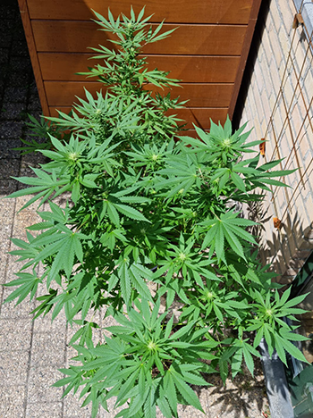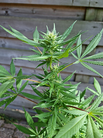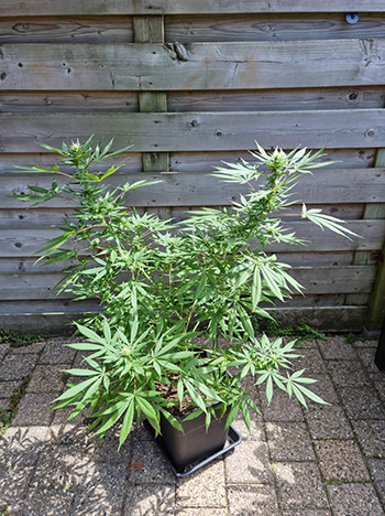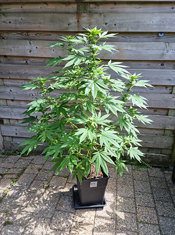 Update 28 juli 2022: Hi iedereen, hier ben ik weer met een nieuwe update van de buitenwiettest. Het resultaat van het verduisteren in in de maand juli is al goed zichtbaar. Dit werpt letterlijk zijn vruchten af. Door nu al te verduisteren is week 2 van de bloeiperiode ingegaan, dus ben ik ondertussen al overgeschakeld op bloeivoeding. Heb wat schutbladen weggeknipt voor betere lichtinval. Ook heb ik de onderste popcorn-topjes al verwijderd. Dit verloren gewicht zwelt aan bij de grotere toppen en bespaart me frustrerend knipwerk. Alles gaat als gepland en m’n plantjes stralen van geluk!