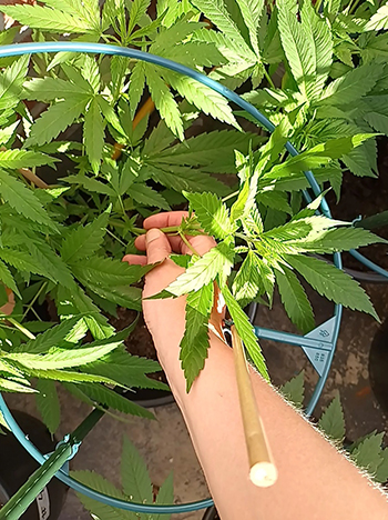 Update 16 juli 2022: Hey redactie en lezers, hier weer een korte update uit het noorden. De plantjes gaan best lekker. Door ze in een spiraal te laten groeien heb ik het idee dat de stam dikker is. Ook zie ik dat de onderste zijtakken als een speer omhoog schieten. Ik wacht steeds 3 tot 4 dagen zodat de top weer wat gegroeid is, en dan zet ik deze weer vast aan de geleider. Tot over een paar weekjes voor weer een update.