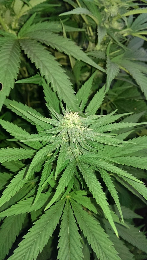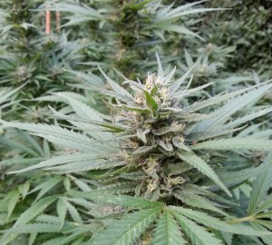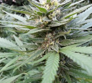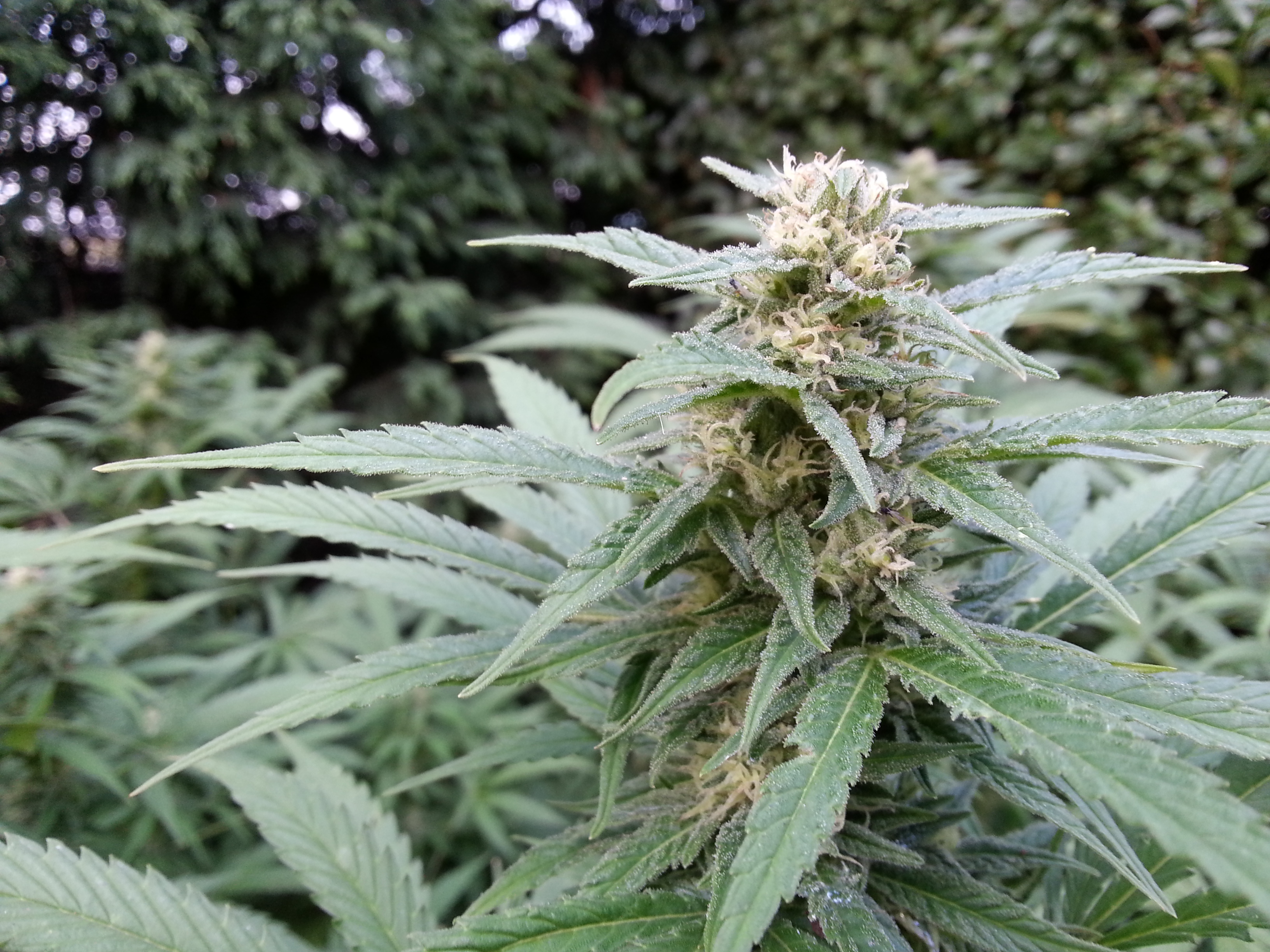 Wel heb ik, in verband met het bovenstaande, alvast een paar toppen geoogst. Met de gedachte dat wat ik vast had, ze me niet meer af konden pakken. Ik heb een stuk of vijftien van de rijpste toppen geknipt en te drogen gehangen. Wel een paar weekjes te vroeg natuurlijk, maar aan de rest van de plant merk je geen verschil, er zit nog genoeg aan dus dat komt helemaal goed. Nu krijgen de toppen die nog aan de plant zitten wat meer lucht en wellicht wat meer voedingsstoffen. En heb ik een beetje vroeg geoogste wiet die als het goed is een energieker effect hebben. Als je wiet iets te vroeg oogst is het effect namelijk een beetje speedy. Oogst je optimaal is hij het potentst, en als je wat later oogst werkt het wat stoneder en ontspannender.