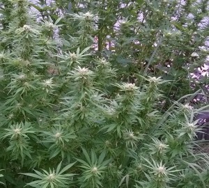 De buds aan mijn buitenwiet beginnen nu wel aardig zwaar te worden, zeker als ze een beetje nat zijn van een regenbui. En toen de wind er dan ook nog stevig tegenaan blies, hingen er toch een paar toppen naar beneden in plaats van omhoog. En omdat je een wietplant geen viagra kunt geven, heb ik een paar bamboestokken in de grond gestoken en een rekje gemaakt zodat de toppen nu weer netjes omhoog staan zoals het hoort.