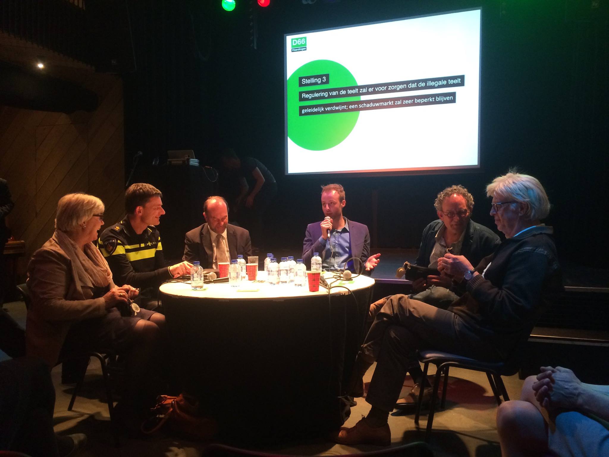 Het debat werd toepasselijk genoeg ‘ruim denken’ genoemd. Uiteraard was het mooi om te horen dat een ruime meerderheid van de mensen aanwezig bij het debat, voorstanders van legalisatie waren. Eigenlijk waren er maar 2 personen tegen, de dame van SGP, de ergste christelijke partij die er is en een politieagent. Magda Berndsen die voor D66 het reguleringsvoorstel maakte en indiende was ook aanwezig. In haar voorstel komen de kleine hobbykwekers zoals ikzelf niet voor, en natuurlijk heb ik haar daar even naar gevraagd.