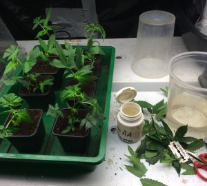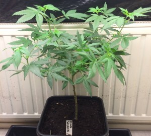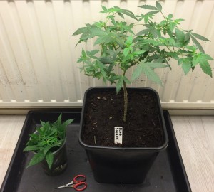 De laatste Automatic Jack Herer heeft de laatste dagen geen water meer gekregen zodat de pot lekker uitdroogde en daarmee de plant nog harder laat werken op zoek naar vocht. Wat er uiteindelijk dus niet meer is en de plant bij het omknippen ook al een stuk droger is. Het laten uitdrogen zorgt er hopelijk ook voor dat de plant zichzelf tegen uitdroging gaat beschermen met wat extra hars, dat gevoel heb ik in ieder geval wel.