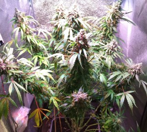 Vorige week oogstte Elmo al een van de twee laatste Automatic Jack Herer planten en nu moest ook de laatste plant er aan geloven. De plant heeft een paar prachtige vuurpijlen van toppen! Uiteraard stonden er al vijf nieuwe planten klaar om de plaats onder de LED lamp over te nemen.
