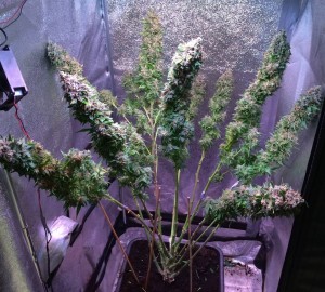 Jawel lieve RollingStoned lezers, eindelijk komt er dan een einde aan mijn eerste LED-test! Na 18 weken is dan ook de laatste van de Jack Herer Autoflowering planten van Zambeza Seeds omgehaald. De plant heeft een prachtige structuur gekregen. Na het fimmen groeide ze de afgelopen maanden uit tot een plant met 12 dikke cola’s van toppen. En daarmee heeft deze LED-lamp zich wat mij betreft wel bewezen. De Horticoled X-Max V2 hing bij mij in een tentje van slechts 60 x 60 centimeter maar zou nog beter tot zijn recht komen in iets grotere ruimtes tot zeg 1,2 bij 1,2 meter. Dat deze lamp goed te gebruiken is om onder af te bloeien daar is geen twijfel over, kijk zelf maar.
