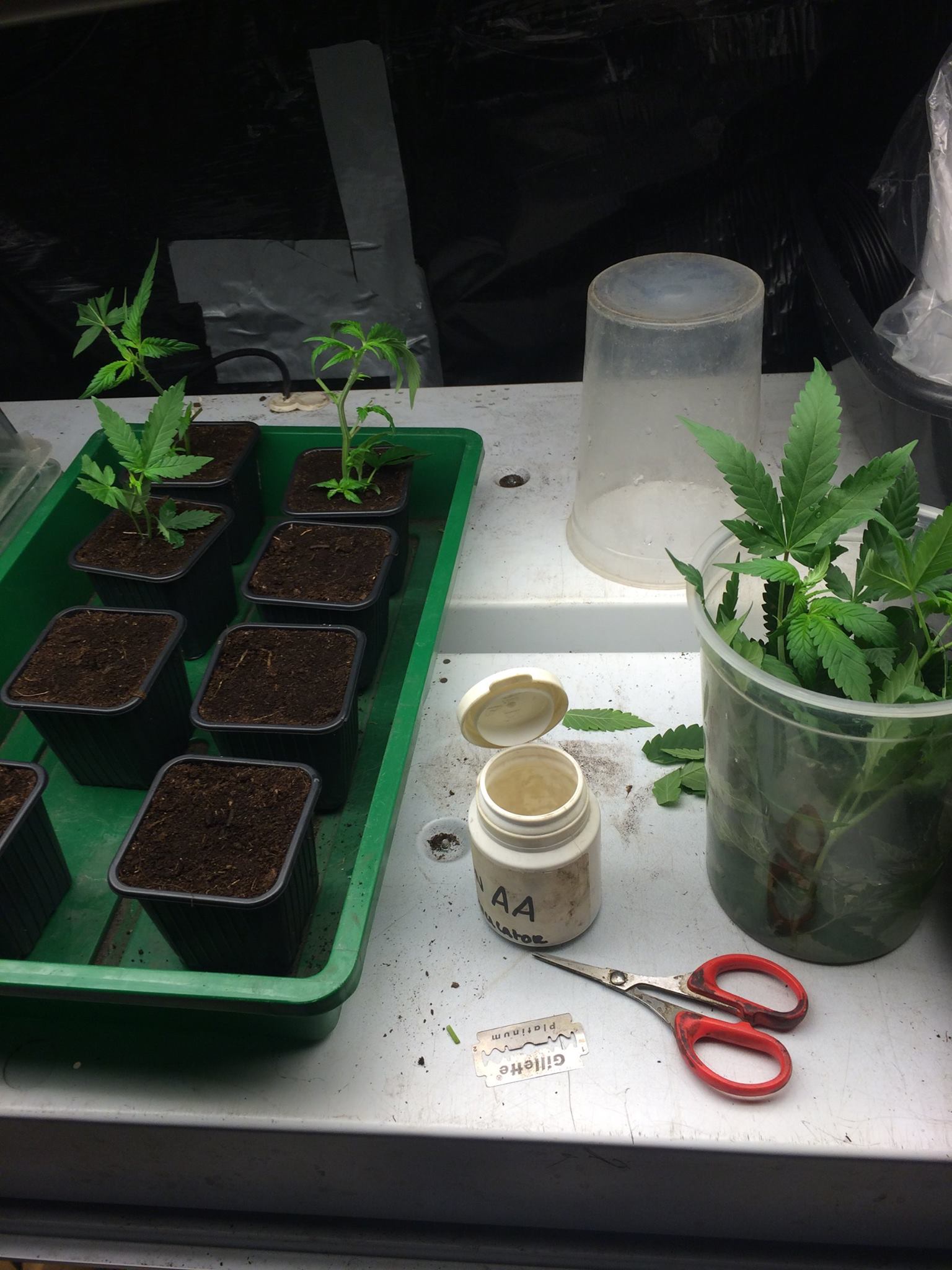 Wie wat bewaart die heeft wat. Een waarheid als een koe en een gezegde dat dubbel en dwars opgaat voor hobbykwekers. Zelf bewaar ik dus ook graag mooie genetica en zo had ik nu dus ook vijf prachtige Duckfoot planten staan die de plaats onder de LED kweeklamp kunnen overnemen. De planten heb ik vorig jaar als stek gesneden van een mooie grote buitenplant, hieronder zie je die buitenplant (met vriendin in schutkleuren) en de stekken die ik ervan nam.