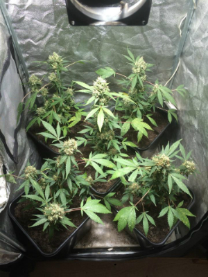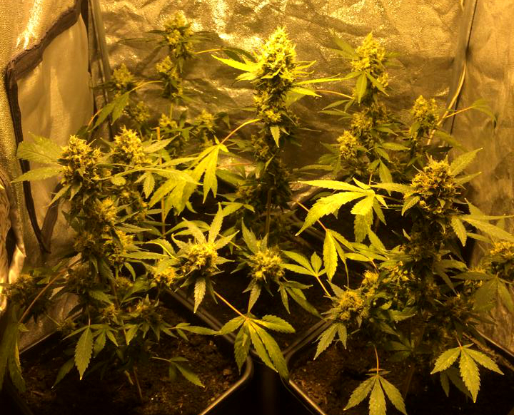 Hallo wietvrienden en vriendinnen, hier is ik weer Elmo. En ik heb een verse update voor jullie vanuit mijn gedoogde kweektentje. Zoals jullie weten heb ik mijn BlueShime geoogst omdat ik het niet meer aan kon zien. De Spint was niet helemaal weg te krijgen en de planten stonden er niet erg mooi meer blij door het stofzuigen van de nare beestjes. Hier nog eens een foto van een deel van de oogst, voor wie mijn update vorige week gemist heeft.