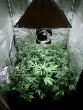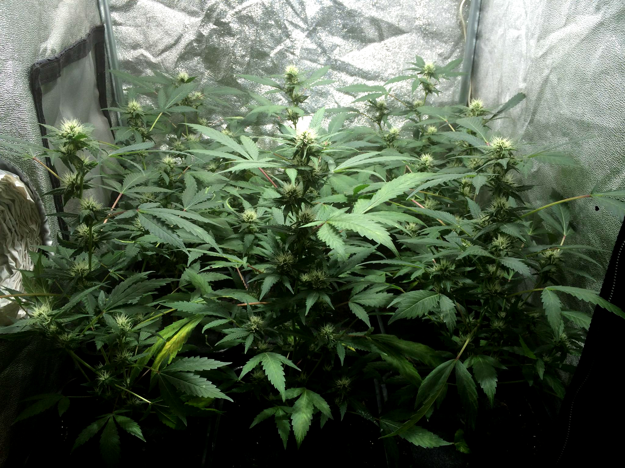 Goedendag beste kweekvrienden, het is weer tijd om jullie een kijkje te geven in mijn kleine gedoogde kweektentje. Ik heb de HPS lamp voor de foto’s weer even vervangen voor mijn metaal halide lamp. Het is de vierde week sinds ik de planten op een 12-uurs lichtregime heb gezet om de bloei in te luiden.
