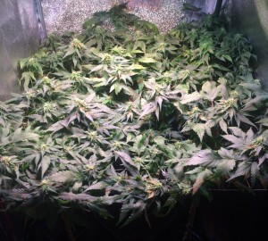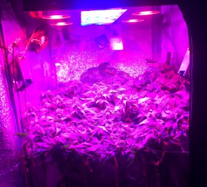 Onder de Horticoled kweeklamp van Elmo bloeien inmiddels al weer zes weken vijf Duckfoot planten en de kleine kweektent begint behoorlijk vol te raken. Zo vol dat Elmo twee weken geleden al een scrogrek moest aanbrengen.