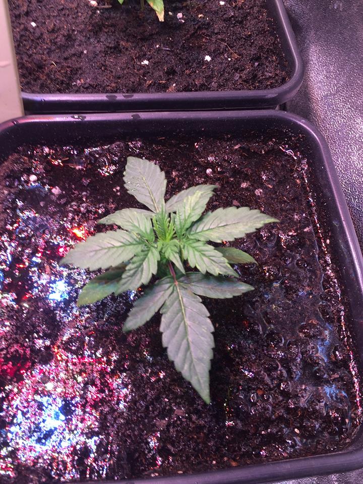 Dag 19 vanaf zaadje, het water op de tweede foto lijkt wel olie in de reflectie van de gekleurde leds