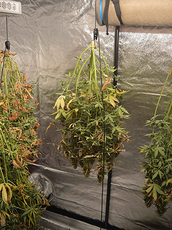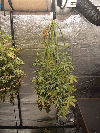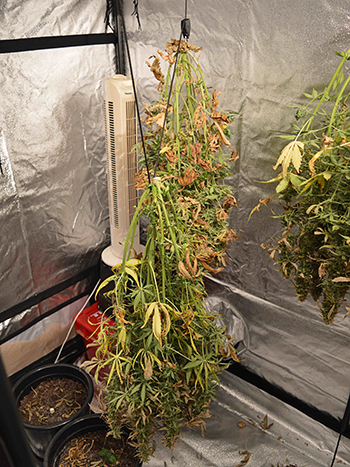 Een andere mogelijke veroorzaker van het probleem kan ook het krachtige licht van de HPS Killer ledlamp zijn. We zagen in de groeifase van de ronde al dat de groei- én bloeistand daarvan inschakelen voor bladproblemen zorgde. Gelukkig herstelden de planten toen ik de bloeistand uitschakelde maar het kan goed zijn dat de HPS Killer toch wat te laag op de planten heeft gehangen. Deze komende ronde doe ik daarom in mijn extra hoge Gorilla kweektent. Die is 2 meter 40 hoog dus als de lamp-hoogte het probleem heeft veroorzaakt dan zal dat deze keer ook wel beter gaan.