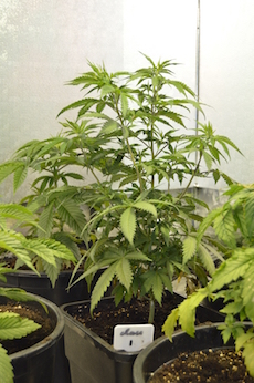 Ik heb op dit moment in de tent vier CBD Medi Kush dames staan en een Cheese dame. De dames staan sinds maandag in de tent en op 24 uur licht onder een 600 Watt metaal halide lamp. Dit omdat het verpotten voor twee dames niet soepel verliep, ze hebben wat wortelschade opgelopen. Het is op zich niet direct dodelijk voor deze dames maar het geeft ze wel veel meer stress dan bijvoorbeeld toppen geeft. Eén dame heeft het er maar moeilijk mee en ik hou haar dan ook extra in de gaten.