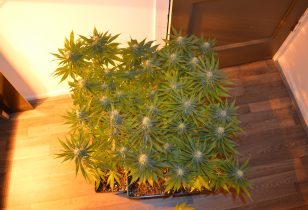 Verder loopt de kweek volgens mij wel lekker. De toppen groeien elke dag aan en het echte opzwellen zit er nog aan te komen. Ik hoop dat ik deze keer nou eindelijk eens wat dichter bij die gram per Watt kom, want dat heb ik nog nooit gehaald. Om de toppen te ondersteunen geef ik ze dagelijks een lekker voedingswatertje gemaakt met een biologische basis bloeivoeding en een PK booster van BioQuant. Uiteraard netjes aangezuurd tot het een pH-waarde van 6,4 heeft. Vanaf week zes zal ik met de PK booster stoppen en alleen nog de basis bloeivoeding geven tot het tijd wordt om te spoelen. Wordt vervolgd…