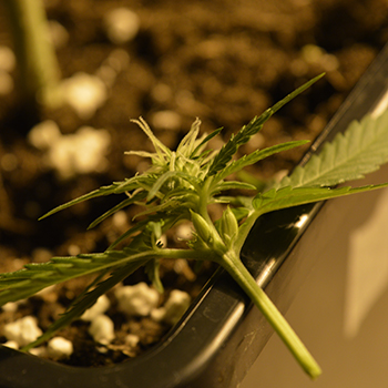 Omdat ik liever geen wietplanten doodmaak heb ik ervoor gekozen de herma te laten staan. Ik heb alle mannelijke bloemen verwijderd en de plant gediefd. Daarbij zag ik dat één van de mannelijke bloemen tot overmaat van ramp al openstond, bij het verwijderen van deze zak ik een klein wolkje stuifmeel. Poef, voor ik het wist gebeurde het. Gelukkig stond de plant op dat moment buiten de kast en niet tussen de andere planten maar ik ben er helemaal niet gerust op dat ik straks geen zaden in mijn wiet ga vinden.