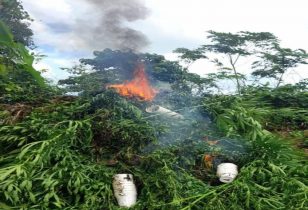 Over van Kraka naar Toco dus, want daar vernietigde de politie zaterdag liefst vierduizend ‘marijuana trees‘ en omdat het vuurtje toch al was aangestoken gelijk ook nog maar 1.500 zaailingen. Ze houden trouwens wel van doorpakken daar op het Caribische Trinidad & Tobago, want de verboden handel was diezelfde ochtend pas ontdekt in ‘een bosrijk gebied buiten San Souci’.
