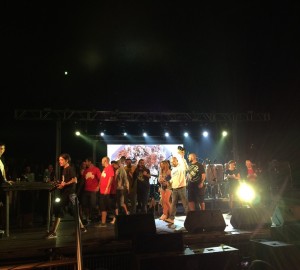 Links: Speciale beursaanbiedingen van Serious en de aankondiging van de Serious Happyness, die de vaste RollingStoned lezers natuurlijk welbekend is. Rechts: Marc en Jodie verlaten het podium nadat ze hun prijs in ontvangst hebben genomen.