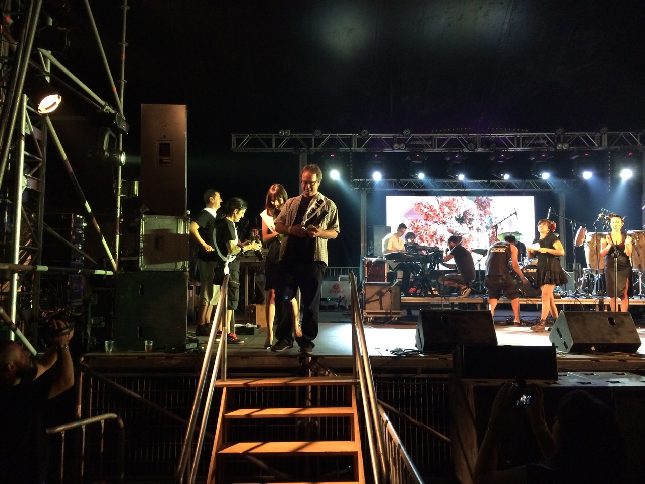 Links: Speciale beursaanbiedingen van Serious en de aankondiging van de Serious Happyness, die de vaste RollingStoned lezers natuurlijk welbekend is. Rechts: Marc en Jodie verlaten het podium nadat ze hun prijs in ontvangst hebben genomen.