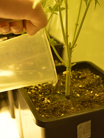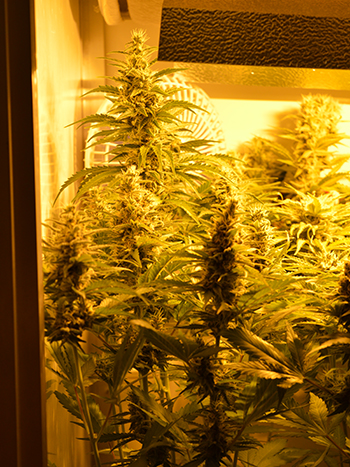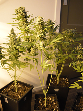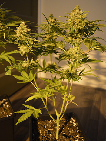 De gefimde toppen (zie geheim experiment) zijn nog niet heel veel groter dan de anderen, maar hebben wel aanzienlijk meer trichomen op dit moment.