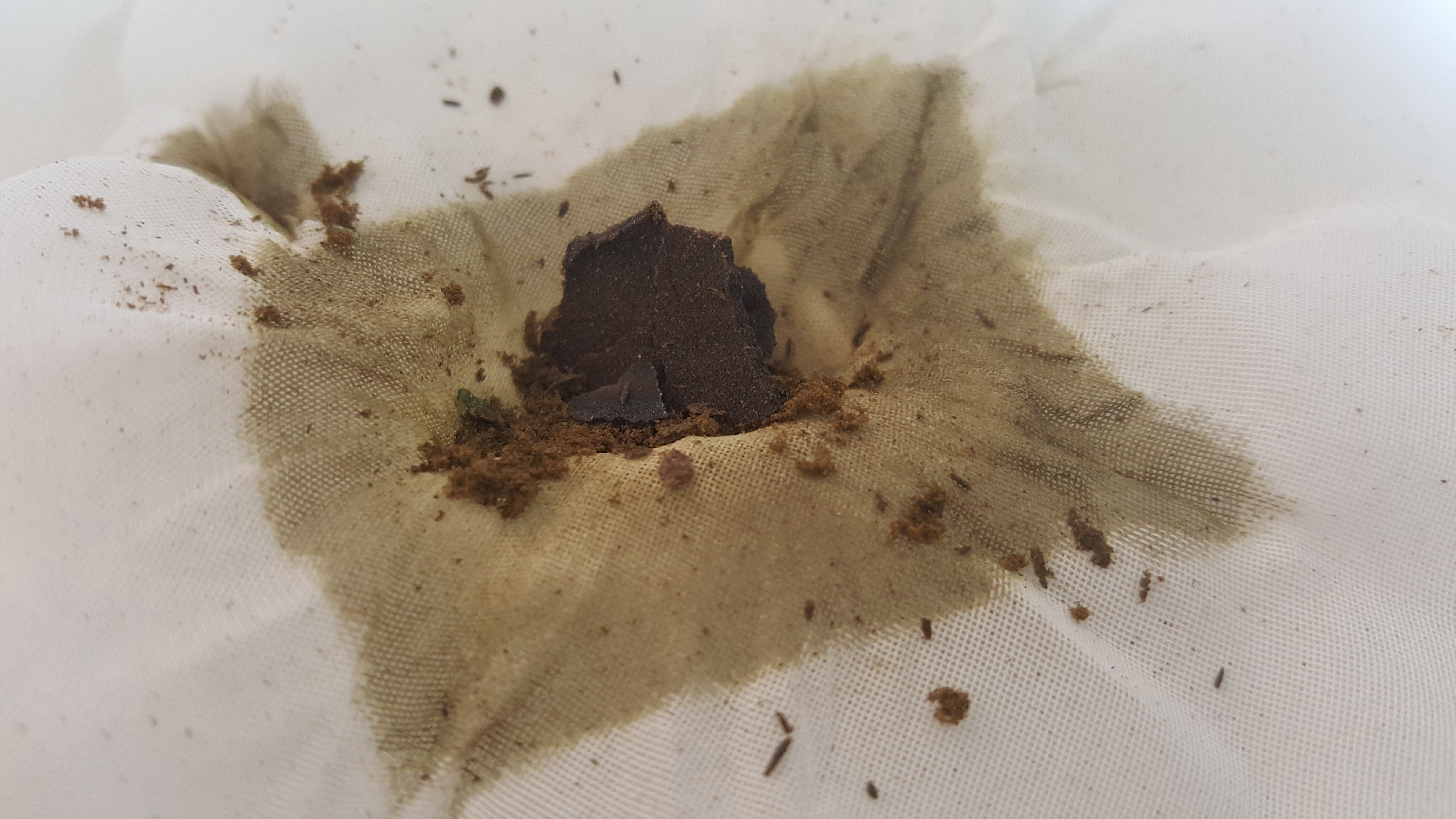 De Rosin Tech werkt met hasj op bijna dezelfde manier als met wiet, je hebt er alleen een stukje filterdoek bij nodig, maar een stukje vitragestof werkt ook prima. Het voornaamste verschil is dat je opbrengst veel groter is en je dus al na een keer persen een paar lekkere dabs hebt!