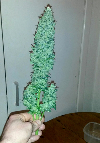De vergeling was geheel volgens de planning en alles ging goed. Ik moest hier en daar wat topzware takken ondersteunen wat ook altijd een goed teken is. Ondertussen hadden de planten er zeven weken en drie dagen bloei op zitten en waren ze mooi rijp voor de oogst. Tijd om het licht uit te zetten voor de laatste 48 uur van het leven van deze dames en ze voor te bereiden op de grote dag.