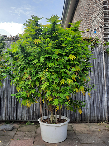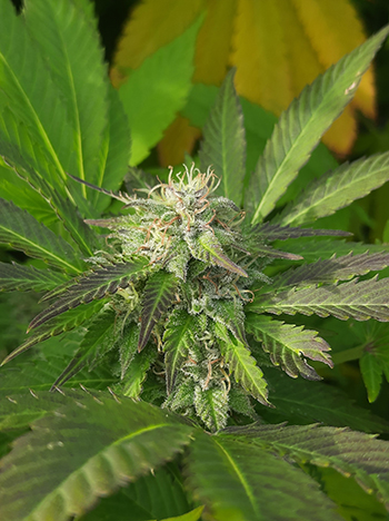 AK Female is de meest geurige van het stel. Op het moment dat je de tuin in stapt, komt je een zware zoete geur tegemoet. Deze indica-dominante strain heeft een bossige bouw en de typische brede bladvingers. Ook bij haar heb ik de trainingstechnieken toegepast om haar breder te maken. Ze is een stuk voller gebleven ondanks dat ik haar van binnenuit flink heb uitgedund.