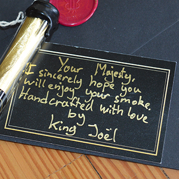 Om dat te testen haalden we twee 24k Gold Royal Rolling vloeitjes en één gouden cone in huis. We beginnen met de cone. Die komt in ons geval met een vriendelijke boodschap van King Joël, die ons oprecht veel plezier met de luxe cone wenst. We verbreken het zegel en vullen de cone voor een eerste rooktest. De cone is al snel gevuld en klaar voor onze eerste heerlijke koninklijke wake and bake. De gouden cone brandt prima en de vloei geeft onze joint een licht blunt-aroma mee. De as heeft een mooie lichtgrijze kleur.