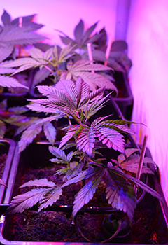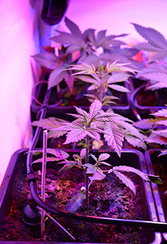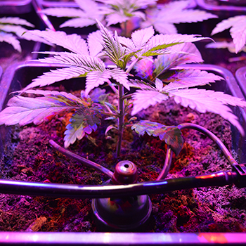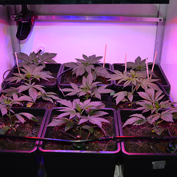 Precies vijf weken geleden werden de negen wietplanten van Dokter Groen als zaadje ontkiemd. Het Blumat bewateringssysteem werkt uitstekend maar de Dinamed CBD planten blijken aanzienlijk sneller te groeien dan de Candy Dawg Kush dames. De groene kweekdokter haalt alles in de kast om ze op gelijke hoogte te houden.