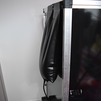Vorige week heb ik uitgelegd hoe het systeem werkt. Voor degenen die dat gemist hebben doe ik dat nog even in vogelvlucht over. Aan de achterkant van de kast hangt een waterreservoir, een lichtdichte zak met een inhoud van 10 liter. Omdat het reservoir een stuk hoger hangt dan de plantenpotten is er voldoende waterdruk en behoeft het systeem geen pomp.