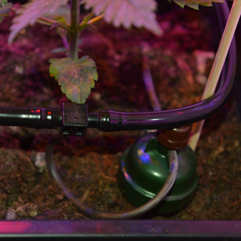 Een timer is evenmin nodig want de planten bepalen zelf hoeveel water ze krijgen. In iedere pot bevind zich namelijk een sensor die het vochtgehalte in de aarde meet en aan de hand daarvan wel of geen water druppelt. Iedere plant krijgt zo dus water naar behoefte, het enige wat ik nog hoef te doen is zorgen dat het reservoir gevuld blijft.