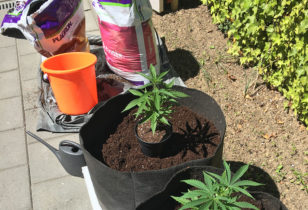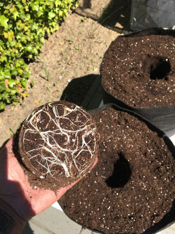 De zon schijnt en er is een paar dagen mooi weer voorspeld dus nu moet het gebeuren. Het zorgvuldig vullen van de potten en het overzetten van de plantjes voelt elk jaar weer als een feestdag! De Smartpots vul ik met Plagron Lightmix. Om het geheel luchtig te houden voor een betere wortelgroei voeg ik één derde deel Plagron Cocos toe.