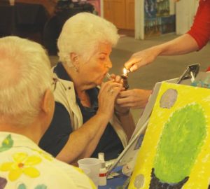 - die dus ook heel stoer zelf aan de bong gaat!