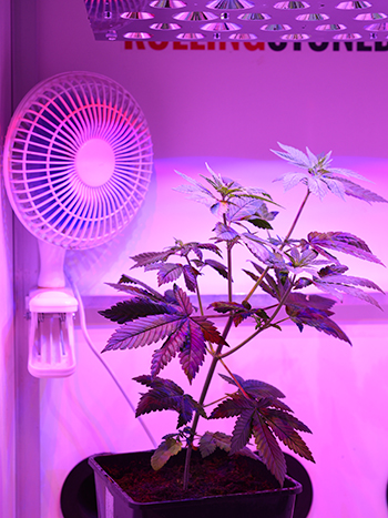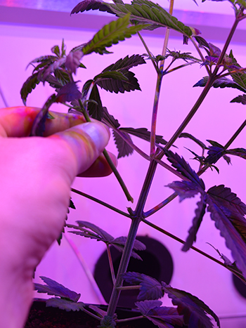 Ik verwacht verder dat ik de komende week ook de eerste vrouwelijke bloeiharen te zien krijg. Als dat het geval is, schakel ik ook de lamp meteen over op de bloeistand, want op dit moment staat die nog altijd in de groeistand. In de bloeistand worden ook alle rode leds ingeschakeld, waardoor de planten niet alleen meer, maar ook een roder lichtspectrum voor hun kiezen krijgen. Dit rode licht bootst de najaarszon na en stimuleert de ontwikkeling van de toppen.