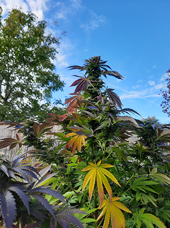 Ook de Purple Berry Kush van Spliff Seeds deed het goed in de tuin. Een mooie plant om te zien. Naarmate de bloei vorderde, kwamen de mooie paarse tinten naar voren. Ook deze had een goede opbrengst, maar zal nog even moeten drogen en curen.